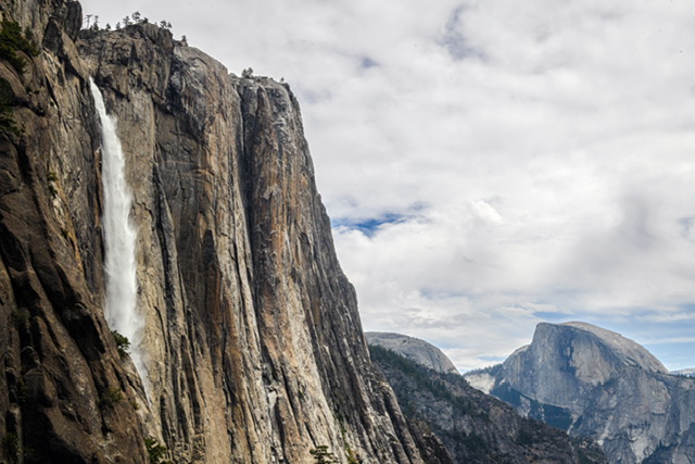 Yosemite Falls是北美大陆最高的瀑布,从Upper Yosemite Falls顶端到Lower Yosemite Falls底端高差2425 ft。而Upper Yosemite Falls Trail修建于1873年,是整个公园里最古老的trail之一。但这个Trail本身也充满了那个时代简单粗暴的风格:从Camp 4开始一路Zig Zag扶摇直上(1000 ft/1 mile)到Columbia Rock,然后向东横切1 mile就可以看到Upper Falls了。然而更残暴的就在后边,紧接着就又是一路Zig Zag扶摇直上(1500 ft/1.5 mile)直接爬到Upper Falls顶端后侧。这一段非常陡,trail表面非常rough,基本没有什么shade,而且人还很多。