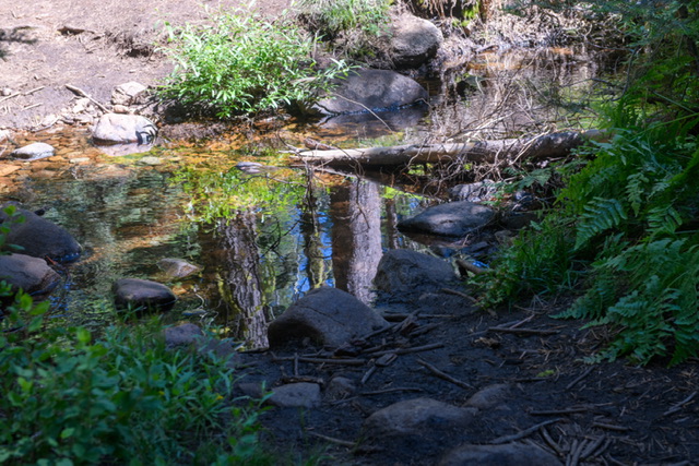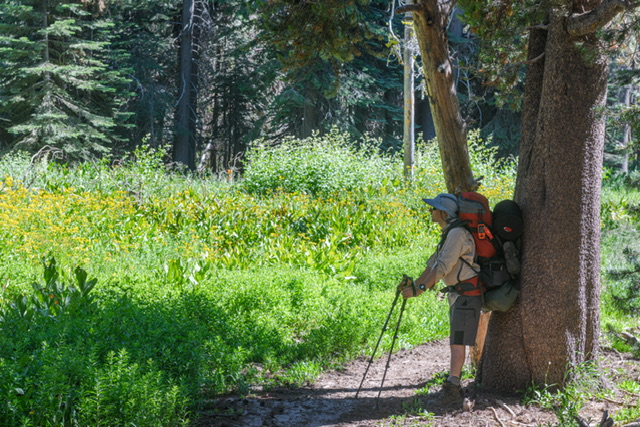 之后的2 mile基本就是在山顶平坦的森林和meadow之间穿行,地势缓和并且有大量shade可以乘凉休息,唯一讨厌的是因为水多所以蚊子也多,不分昼夜等在那里咬人。