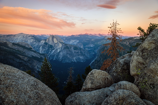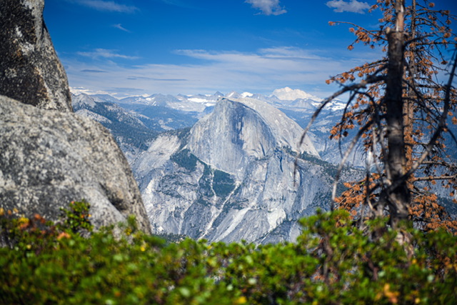 走到Eagle Peak脚下看到El Capitan trail标志的时候,就只剩下最后0.3 mile到summit了。剩下的部分也不难爬,但山顶上平坦可供camping的地方并不是很多,需要仔细寻找。我最后找了一个悬崖边面向Clouds Rest的“平”地,山顶除了一层薄土以外下边就是花岗岩,所以完全不可能打stake下去,只能找几块石头拴一拴。