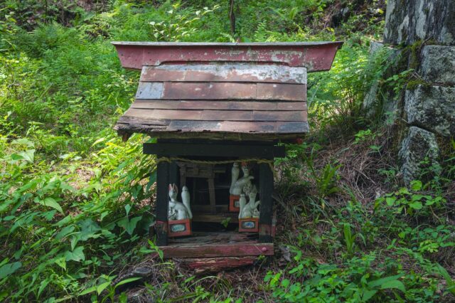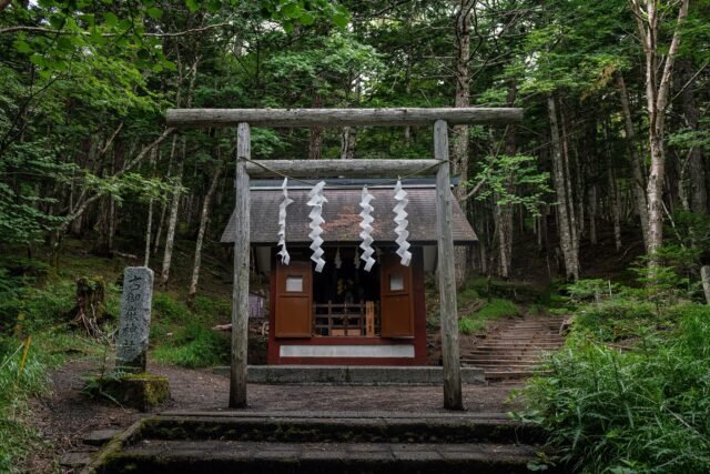 看看第一班公交车要中午十一点才来,与其枯坐苦等,决定继续沿着吉田trail往下走。五合目以下的trail安静很多,只有个别trailrunner在马返和五合目之间跑步。这中间可以看到很多被荒废遗弃的山屋和神社。到马返是上午十点多,看看公车也还早,就决定继续往下步行。这一段比较平缓,但随着海拔降低气温也开始回升变得燥热起来。到中午十二点终于走到富士吉田的北口本宫富士浅间神社(Kitaguchi Hongu Fuji Sengen Jinja),看了看记录一共走了大概15 mile,海拔下降大约10000 ft。
