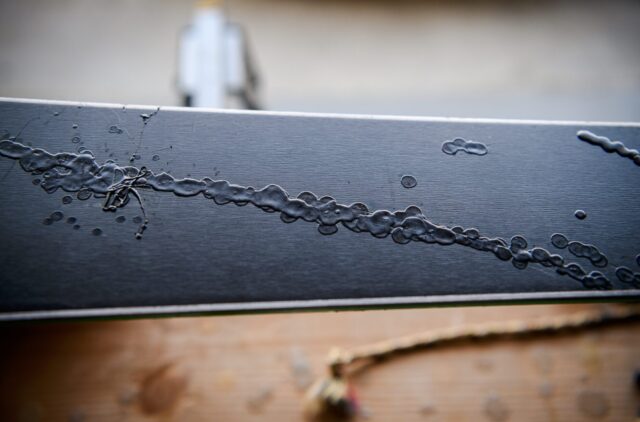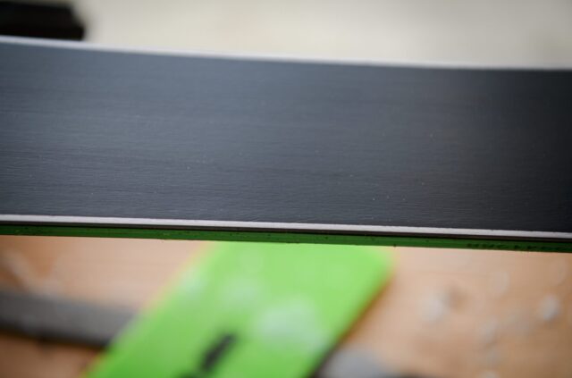 完成之后,雪板底部应该光滑平整,细看可以看到一些方向一致的微小凹槽。到这里打蜡工作就大功告成了。